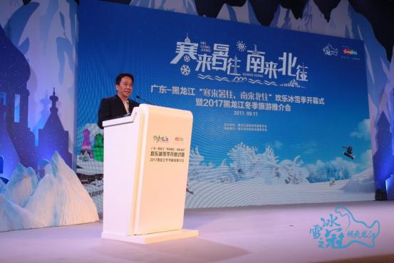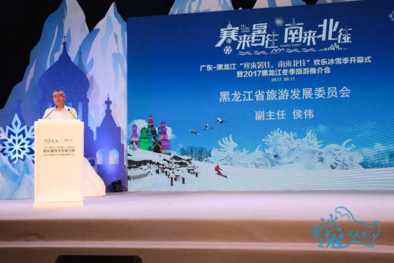 推介會開始后,廣東省旅游局副巡視員毛誠和黑龍江省旅游發(fā)展委員會副主任侯偉分別發(fā)表致辭。毛誠表達了對這場推介會的重視和肯定,他說道:“印象里,黑龍江的冬季是冰雪世界、純白的天堂,其最富代表性的‘北國風光’和廣東有著極大的差異性!┲凇乘埥珖慰,特別是廣東游客心之所想、身之前往。”侯偉回顧了兩省旅游部門對口合作取得的成就,向大家介紹了黑龍江優(yōu)質(zhì)的冬季旅游資源,并且發(fā)出盛情邀請:“北上‘冰雪之冠’黑龍江吧,探尋未知的冰雪世界,走一趟精彩的冰雪發(fā)現(xiàn)之旅!”