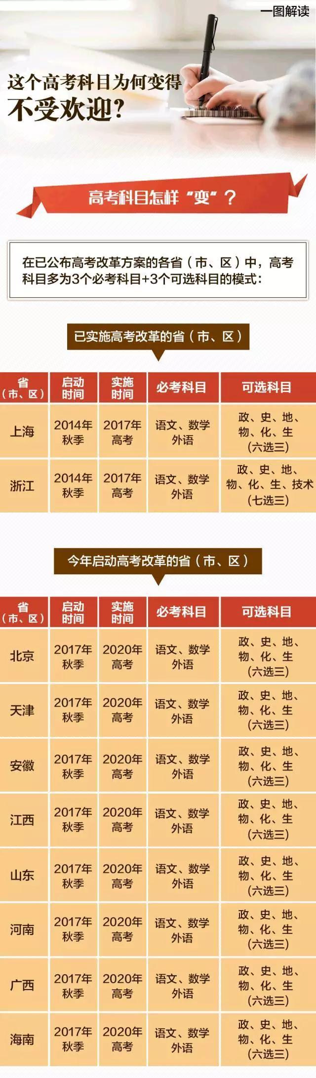 在今年的高考中,浙江、上海兩省、市的學生已率先采用“3+3”模式應試,該屆學生對于考試科目的選擇自然也成為了重要的參考。在眾多學生的選擇中,一個在往屆頗為重要的高考科目,卻受到了冷遇……