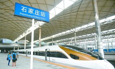 8月21日,“復(fù)興號(hào)”中國(guó)標(biāo)準(zhǔn)動(dòng)車(chē)組?吭谑仪f站。新華社記者 王曉攝