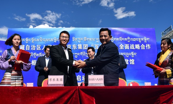 9月14日,京東集團(tuán)與西藏自治區(qū)人民政府在拉薩隆重簽署“互聯(lián)網(wǎng)+”全面戰(zhàn)略合作框架協(xié)議。雙方將充分發(fā)揮各自優(yōu)勢,在現(xiàn)代物流、商貿(mào)流通、數(shù)據(jù)服務(wù)、創(chuàng)業(yè)創(chuàng)新等領(lǐng)域加強合作,促進(jìn)西藏產(chǎn)業(yè)結(jié)構(gòu)轉(zhuǎn)型升級,京東“西藏扶貧館”也在當(dāng)日正式開館。西藏自治區(qū)人民政府副主席汪海洲,西藏自治區(qū)人民政府副秘書長潘旭春,西藏自治區(qū)商務(wù)廳黨組副書記、廳長邊巴,京東集團(tuán)執(zhí)行副總裁兼首席公共事務(wù)官藍(lán)燁,京東集團(tuán)西南區(qū)分公司副總經(jīng)理楊賀欣,京東集團(tuán)公共事務(wù)部高級總監(jiān)李賀明等出席簽約儀式。