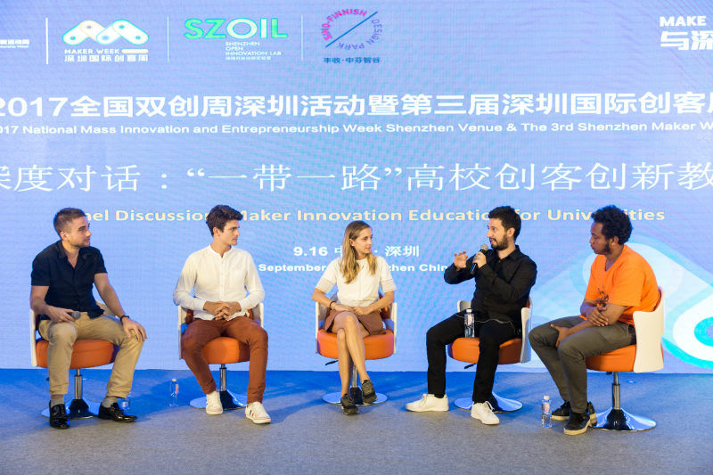 峰會中,埃塞俄比亞iCog實驗室項目經(jīng)理瑞依·策加耶、Promperu MarcaPeru實驗室負(fù)責(zé)人維克多·古斯塔沃·弗蘭德、MakerTour創(chuàng)客空間/實驗室市場開發(fā)者盧卡斯·格拉凡、MakerTour創(chuàng)客空間/實驗室市場開發(fā)者瑪麗·勒夫羅以國際化的視野、互聯(lián)網(wǎng)+的思維,圍繞“一帶一路”高校創(chuàng)客創(chuàng)新教育這一話題就如何提高創(chuàng)客、高校院所及學(xué)生的創(chuàng)新精神,培育智能硬件創(chuàng)新創(chuàng)業(yè)生態(tài)環(huán)境等進行分享交流。
