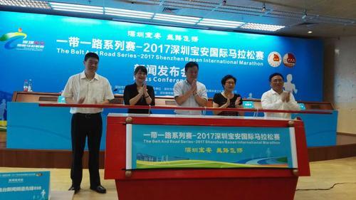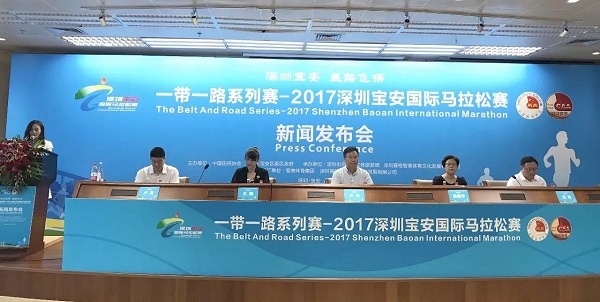 國家體育總局田徑管理中心馬拉松辦公室主任水濤、寶安區(qū)人民政府副區(qū)長梁敏華、寶安區(qū)委宣傳部常務副部長王曦、寶安區(qū)文體旅游局副局長盧清、智美體育集團高級副總裁、深圳賽格智美總經(jīng)理沈偉以及特邀跑團代表、寶馬組委會各職能單位代表共同出席了20日的新聞發(fā)布會。2017深圳寶安國際馬拉松賽是由中國田徑協(xié)會、深圳市寶安區(qū)委區(qū)政府共同主辦,深圳市寶安區(qū)文體旅游局、深圳賽格智美體育文化發(fā)展有限公司聯(lián)合承辦。