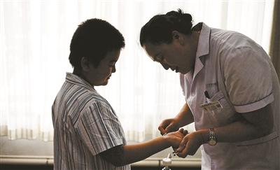 9月26日下午,北京青年報(bào)記者在醫(yī)院見(jiàn)到了穿著病號(hào)服,正等待涂藥的江樂(lè),江樂(lè)個(gè)子不高,但身體很壯實(shí),性格靦腆又帶著點(diǎn)調(diào)皮。江樂(lè)來(lái)自河北保定,目前在讀四年級(jí)。