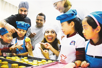中秋節(jié)之際,河北唐山市豐潤區(qū),來自英國、印度、孟加拉國的外教老師與當(dāng)?shù)氐暮⒆觽円黄鹬谱髟嘛,體驗(yàn)中華民族傳統(tǒng)文化。