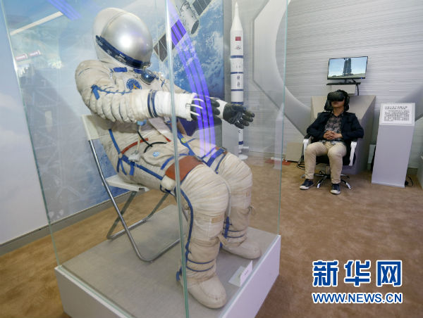 9月26日,參觀者在進行長征二號F運載火箭發(fā)射場組裝VR體驗。新華社記者沈伯韓攝
