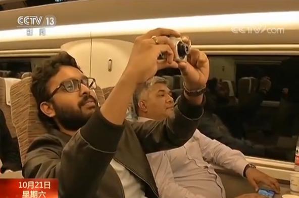 同樣是第一次來到北京的這位毛里求斯的記者,特別關(guān)注高鐵跑起來速度能有多快。盯著電子屏上逐漸顯示變快的速度,手里的照相機也一直沒停下來。