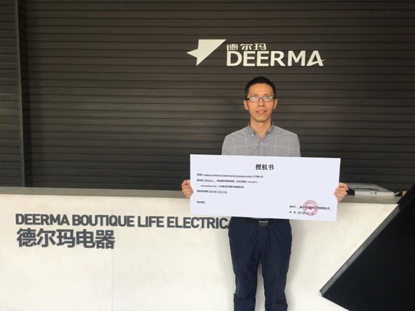 德爾瑪廠長白蜀強興奮地向記者展示與京東售全球簽署的授權書
