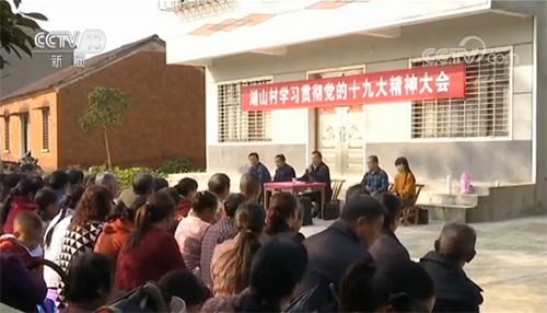 近日,剛剛回到湖北鐘祥湖山村的十九大代表、湖山村黨委書記鄭雄,在村民們的家門口,向大家傳達(dá)十九大精神,讓村民們非常振奮。