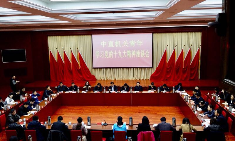 10月31日,中直團(tuán)工委、中直青聯(lián)舉辦中直機(jī)關(guān)青年學(xué)習(xí)黨的十九大精神座談會,交流學(xué)習(xí)黨的十九大精神的體會,對中直機(jī)關(guān)青年深入學(xué)習(xí)貫徹落實(shí)黨的十九大精神進(jìn)行研究部署。來自中直青聯(lián)委員中的十九大代表,中直機(jī)關(guān)優(yōu)秀青年典型、向上向善好青年代表,參與十九大報(bào)道的青年骨干代表參加座談。中直團(tuán)工委書記、中直青聯(lián)主席吳佳松主持會議,對中直機(jī)關(guān)各單位團(tuán)組織、中直青聯(lián)抓好學(xué)習(xí)宣傳貫徹黨的十九大精神提出要求。