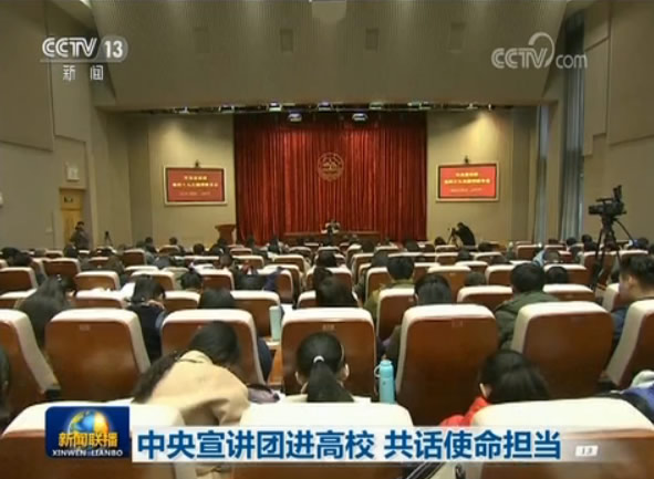 央視網(wǎng)消息(新聞聯(lián)播):連日來,學習貫徹黨的十九大精神中央宣講團走進高校,通過透徹深入的宣講、貼近實際的解讀,讓黨的十九大精神落地生根。
