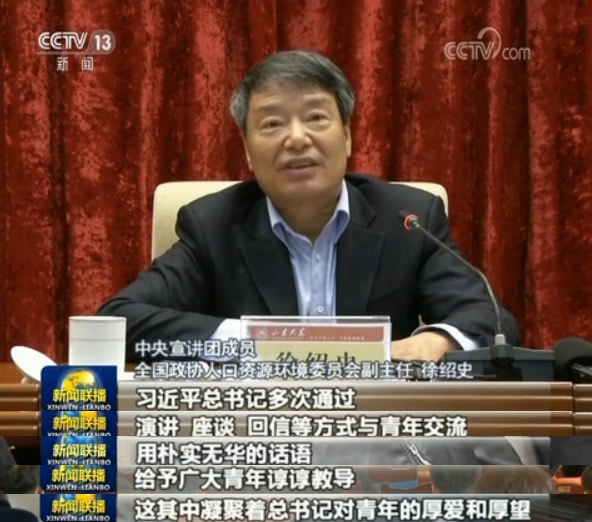 21日,中央宣講團成員、全國政協(xié)人口資源環(huán)境委員會副主任徐紹史來到山東大學作宣講。