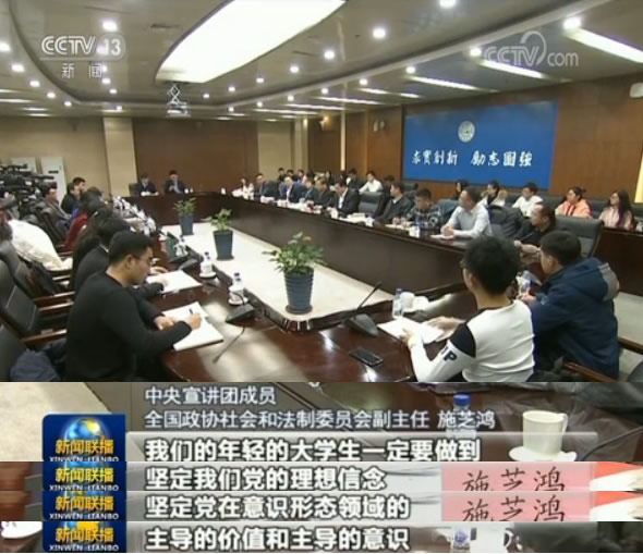 在吉林大學,中央宣講團成員、全國政協(xié)社會和法制委員會副主任施芝鴻理論聯(lián)系實際為師生們宣講。