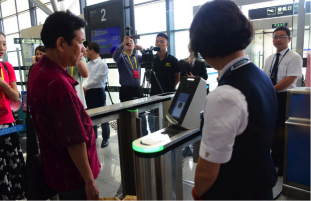 今年6月底,南航在河南南陽機場啟用國內(nèi)首個人臉識別智能化登機系統(tǒng)。無需證件、登機牌,在登機口前,旅客只需“刷臉”即可秒速開閘登機。