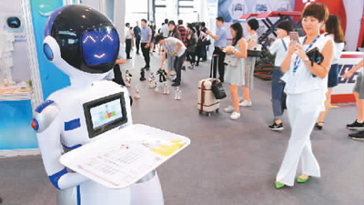 中國-東盟博覽會上的機(jī)器人服務(wù)員。新華社發(fā)