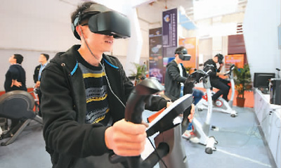 市民體驗(yàn)VR智能健身單車。新華社發(fā)