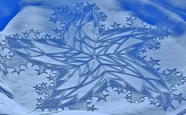 這其實是世界上第一個雪藝家Simon Beck的杰作。這些神奇的畫都是他用腳踩出來的…………