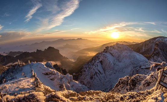 在海拔3100米的神農(nóng)頂上,白雪、冷杉、草甸、云海構成的畫面,淡到極致、美到窒息。