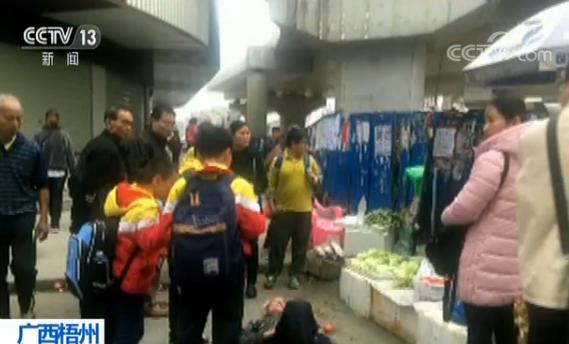 3日下午五點十分左右,正值下班和放學高峰期,在廣西梧州市工廠一處路口,一位頭發(fā)花白的老人不小心摔倒在地,動彈不得,頭部擦傷。這時,剛放學的幾位小學生路過,看到這種情況,立刻主動上前救助這位老人。