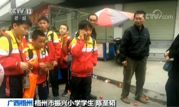 央視網消息:3日,在廣西梧州一處街頭,一位老人不慎摔倒。幾名路過的小學生,救助老人的同時,撥打了老人家屬的電話。使得老人得到了及時救治。