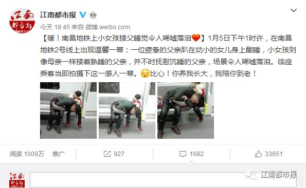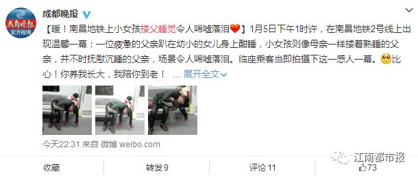 南昌地鐵上小女孩摟父睡覺(jué)令人唏噓落淚