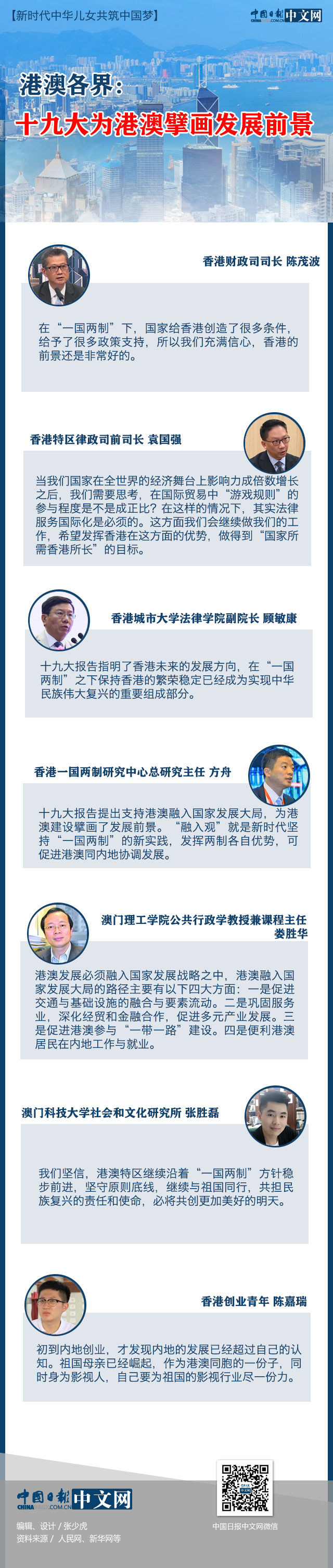 回歸祖國以來,港澳依托祖國、面向世界,“一國兩制”在港澳的實(shí)踐取得了舉世公認(rèn)的成功。十九大報(bào)告明確指出,香港、澳門發(fā)展同內(nèi)地發(fā)展緊密相連,支持香港、澳門融入國家發(fā)展大局。港澳各界表示,十九大為港澳建設(shè)擘畫發(fā)展前景。
