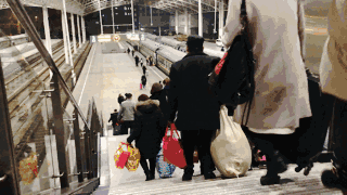 車終于到達了阜陽站。還沒到站時,旅客們早早搬下行李,穿上外套。在門口排隊等候,“歸心似箭咯!”