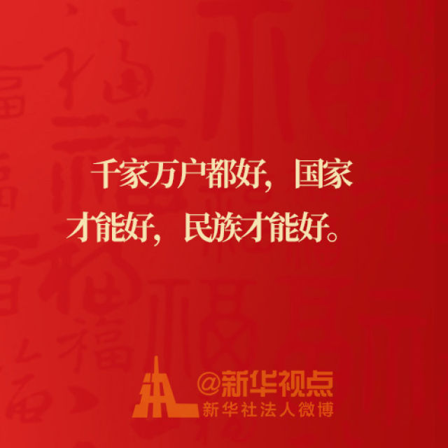 習(xí)近平總書記在2018年春節(jié)團(tuán)拜會(huì)上發(fā)表重要講話說:① 我們祖國(guó)的前景一定會(huì)一年更比一年好。②春節(jié)是新的開始,預(yù)示著新的希望。③千家萬(wàn)戶都好,國(guó)家才能好,民族才能好。④奮斗者是精神最為富足的人。⑤新時(shí)代是奮斗者的時(shí)代。一起品味、學(xué)習(xí)總書記的新春金句