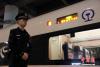 孔令揚在站臺等待列車的到來。胡宏 攝 -