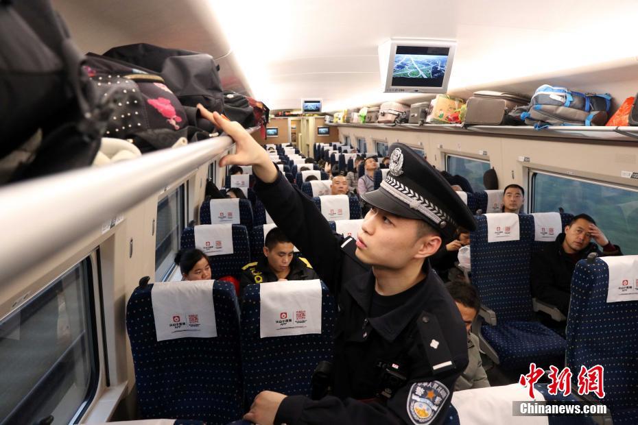 孔令揚是南寧鐵路公安處乘警支隊一名普通的乘警,今年28歲,家在山東濟南,父親曾是一名鐵路警察。平時,這名年輕的“90”后鐵警,不停地來往于南寧和濟南之間,與妻子和父母過著聚少離多的“雙城”生活,每月只有6個晚上在家。今年大年三十和初一正好是他值班,大年三十晚上20時40分,孔令揚值乘的G434次高鐵列車才到達濟南西站,孔令揚趕緊趕回家與父母團聚。2月16日(年初一)早上6時,他即從家里出發(fā),趕到濟南西站,值乘上午8時15分由濟南西開往南寧東的G433次列車?琢顡P只能和父母相聚不到8個小時,沒來得及和妻子一起去岳母娘家省親?琢顡P只是南寧鐵路公安處大年夜值乘民警中的一員,今年大年夜和年初一,南寧鐵路公安處共有40多名民警堅守在崗位上。胡宏 攝 -