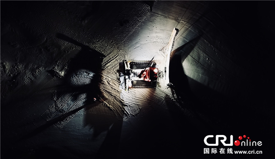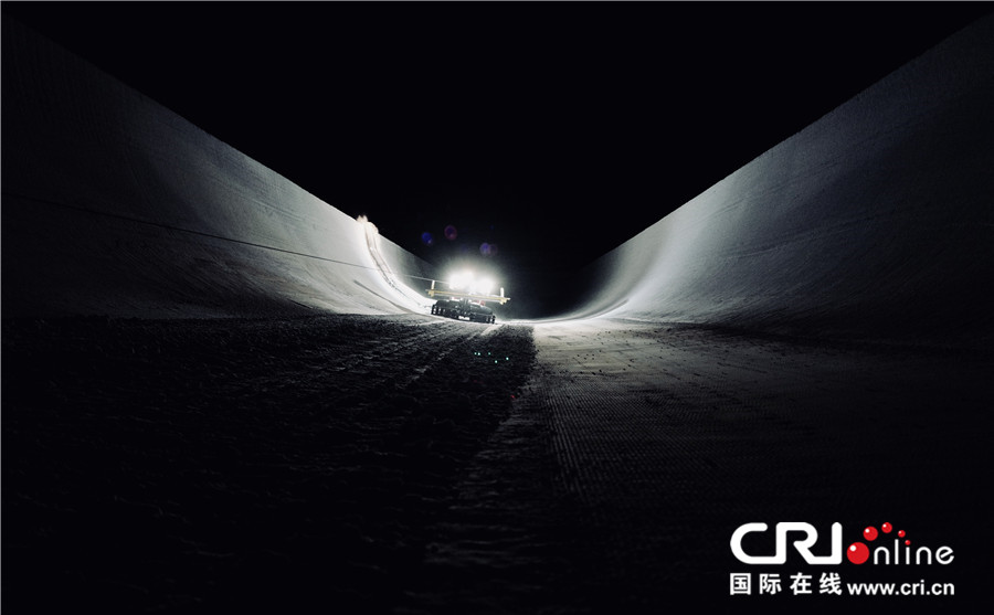 專(zhuān)業(yè)鏟雪車(chē)在云頂雪場(chǎng)的U型場(chǎng)地工作。 攝影:李晉