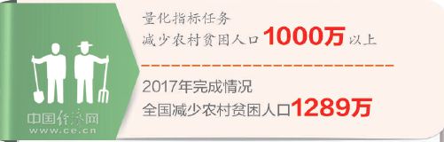 統(tǒng)計(jì)數(shù)據(jù)顯示,2017年我國(guó)貧困人口減少1289萬,超額完成了去年兩會(huì)期間《政府工作報(bào)告》確定的減貧1000萬人的任務(wù),意義重大。