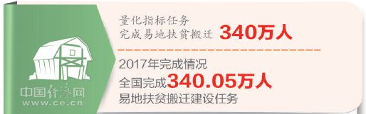 2017年,我國(guó)順利完成340.05萬人易地扶貧搬遷建設(shè)任務(wù)。對(duì)22個(gè)有搬遷任務(wù)省份開展全覆蓋的常態(tài)化稽查,及時(shí)推動(dòng)問題整改。