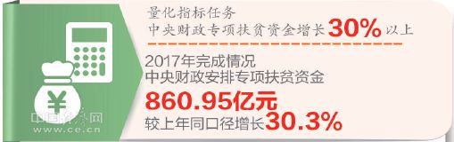 2017年,我國(guó)大力支持脫貧攻堅(jiān)。中央財(cái)政專項(xiàng)扶貧資金增長(zhǎng)30.3%,農(nóng)業(yè)、教育、醫(yī)療、交通等領(lǐng)域資金同步加大對(duì)貧困地區(qū)投入力度。我國(guó)將貧困縣財(cái)政涉農(nóng)資金整合試點(diǎn)推廣到全部貧困縣。2017年,貧困縣整合財(cái)政涉農(nóng)資金2956億元,比上年增加26%。