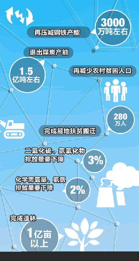 去產(chǎn)能:再壓減鋼鐵產(chǎn)能3000萬噸左右,退出煤炭產(chǎn)能1.5億噸左右。