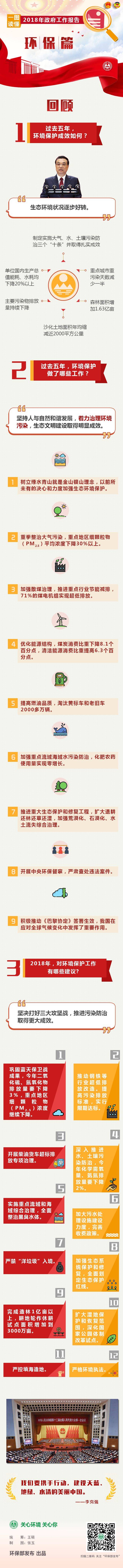 今日上午9時(shí),十三屆全國人大一次會議在人民大會堂開幕,國務(wù)院總理李克強(qiáng)作政府工作報(bào)告。一圖讀懂,2018年政府工作報(bào)告之“環(huán)保篇”。
