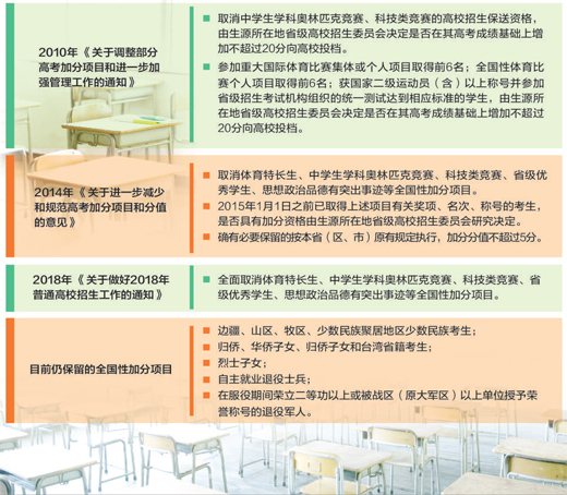 本報(bào)北京3月21日電 (記者張爍)近日,教育部印發(fā)《關(guān)于做好2018年普通高校招生工作的通知》,要求全面取消體育特長(zhǎng)生、中學(xué)生學(xué)科奧林匹克競(jìng)賽、科技類(lèi)競(jìng)賽、省級(jí)優(yōu)秀學(xué)生、思想政治品德有突出事跡等全國(guó)性高考加分項(xiàng)目。這是記者21日從教育部獲悉的。