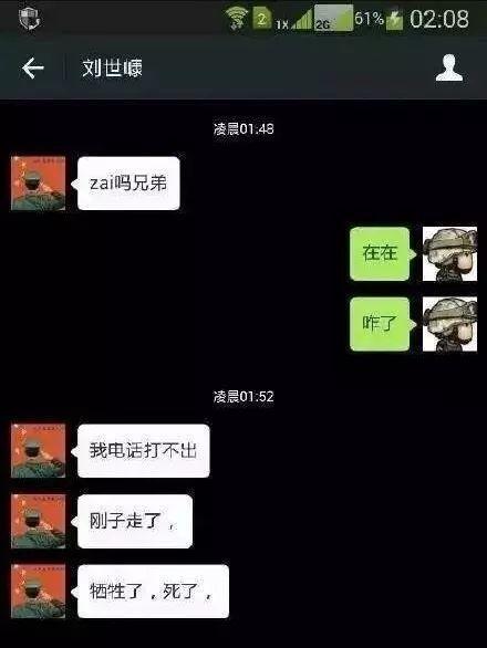 ——剛子走了,犧牲了……我在車上,去塘沽……我回不來,我爸就是你爸,記得給我媽上墳。