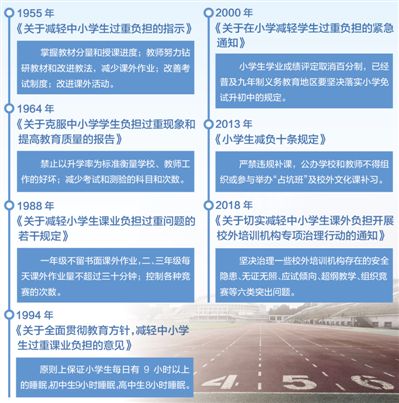 為什么會這樣?其實,自1955年7月教育部發(fā)出新中國第一個“減負令”——《關于減輕中小學生過重負擔的指示》以來,60余年間我國中央及地方相關部門出臺的學生“減負令”多達上百道,圍繞學習時間、考核方式、教材內容、課外活動、教師水平、學校領導等方面做出了一系列細致嚴謹的規(guī)定。