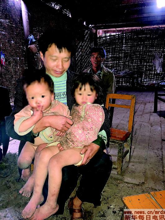 他看起來(lái)并不悲觀,他將2歲的兒子和6歲的女兒抱在懷中,孩子光著的腿已凍得通紅。冬日寒風(fēng)凜冽,我們擔(dān)心孩子會(huì)凍著,他卻擺著手說(shuō):不冷、不冷。
