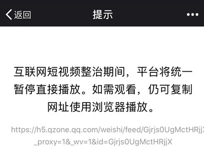 繼快手、火山小視頻等APP被下架,內(nèi)涵段子永遠關(guān)停之后,11日騰訊發(fā)布官方公告稱,微信、QQ也將在互聯(lián)網(wǎng)短視頻整治期間,暫停短視頻APP外鏈直接播放功能,涉及的APP包括微視、快手、抖音、西瓜視頻等。如果用戶需要觀看,可復(fù)制網(wǎng)址鏈接,并使用瀏覽器進行播放。