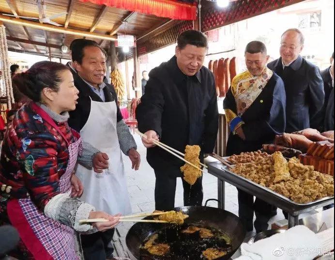 2018年2月12日,習(xí)近平總書記前往四川汶川縣映秀鎮(zhèn)考察。實(shí)地察看這里震后10年的發(fā)展振興情況。在當(dāng)?shù)厝罕娊?jīng)營的制茶坊,總書記了解發(fā)展茶產(chǎn)業(yè)帶動群眾致富的情況,還親自操作打酥油茶。在村民開辦的飯店,總書記問生意怎么樣,一家人的生活過得好不好。他還體驗(yàn)了炸酥肉和磨豆花的過程。總書記轉(zhuǎn)動磨盤,笑著說:“很練臂力啊,真是越磨越帶勁!爆F(xiàn)場響起陣陣歡聲笑語。