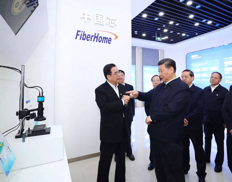 26日上午,習(xí)近平在烽火集團(tuán)有限公司考察時(shí),聽取了武漢市新舊動能轉(zhuǎn)換發(fā)展情況介紹,察看了公司自主創(chuàng)新產(chǎn)品展示,了解企業(yè)轉(zhuǎn)型升級、優(yōu)化調(diào)整產(chǎn)業(yè)結(jié)構(gòu)和加強(qiáng)黨建工作的情況。習(xí)近平對大家說,你們所從事的光通信行業(yè)很重要,要建設(shè)網(wǎng)絡(luò)強(qiáng)國,需要你們加快腳步,更快地占領(lǐng)一些制高點(diǎn)。他還指出,武漢高校眾多,很有發(fā)展?jié)摿,人才在發(fā)展中起決定性作用,要把人才隊(duì)伍建設(shè)好。