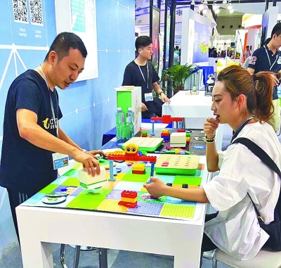 工作人員向觀眾展示編程機(jī)器人。光明日報(bào)記者 黨文婷攝/光明圖片