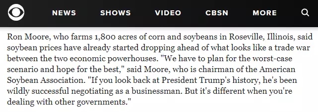 身為美國大豆協(xié)會(huì)負(fù)責(zé)人,他表示,