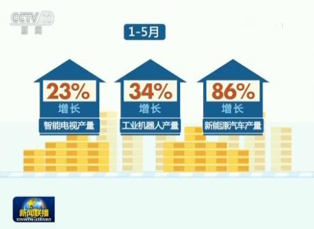 這一變化背后,一方面是新產(chǎn)業(yè)、新產(chǎn)品為代表的新引擎正快速成長(zhǎng)。1-5月份,智能電視產(chǎn)量增長(zhǎng)23%,工業(yè)機(jī)器人產(chǎn)量增長(zhǎng)34%,新能源汽車產(chǎn)量同比增長(zhǎng)86%。更多的則是供給側(cè)結(jié)構(gòu)性改革成效繼續(xù)顯現(xiàn)帶來(lái)的產(chǎn)業(yè)升級(jí)所釋放出的經(jīng)濟(jì)新動(dòng)力。