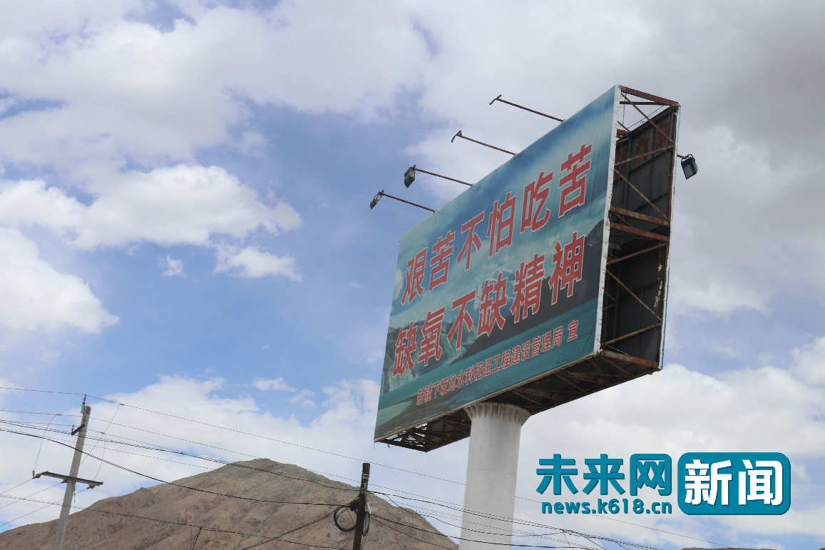 2018年7月,喀什市到塔縣沿途中的一處標語“艱苦不怕吃苦,缺氧不缺精神”。未來網(wǎng)記者 鞏帥 攝