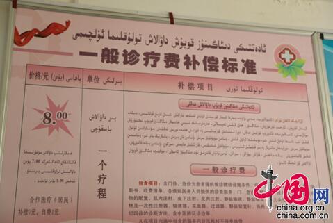 阿特加依里村衛(wèi)生室里張貼的一般診療費(fèi)補(bǔ)償標(biāo)準(zhǔn)。記者王虔/攝