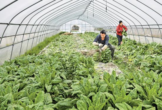 慈溪坎墩街道的農(nóng)業(yè)園區(qū)種植戶正在收割萵筍。