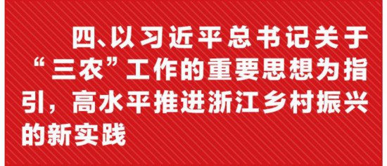 1.深刻領(lǐng)會習(xí)近平總書記關(guān)于“三農(nóng)”工作的重要思想的精神實質(zhì),久久為功抓落實。結(jié)合新時代實施鄉(xiāng)村振興戰(zhàn)略的新特點新要求,認真學(xué)習(xí)、深刻把握習(xí)近平總書記關(guān)于“三農(nóng)”工作的重要思想的豐富內(nèi)涵和核心要義,久久為功、善作善成、一抓到底。堅持“執(zhí)政為民重‘三農(nóng)’”,堅定實施農(nóng)業(yè)農(nóng)村優(yōu)先發(fā)展戰(zhàn)略;堅持“以人為本謀‘三農(nóng)’”,把農(nóng)民群眾對美好生活的追求作為“三農(nóng)”發(fā)展的最高目標;堅持“統(tǒng)籌城鄉(xiāng)興‘三農(nóng)’”,把推進城鄉(xiāng)發(fā)展一體化作為解決好新時代“三農(nóng)”問題的根本路徑;堅持“改革開放促‘三農(nóng)’”,把構(gòu)建城鄉(xiāng)融合的體制機制作為新時代“三農(nóng)”發(fā)展的根本動力;堅持“求真務(wù)實抓‘三農(nóng)’”,積極探索把握新時代“三農(nóng)”發(fā)展的規(guī)律性,真抓實干推動浙江“三農(nóng)”發(fā)展繼續(xù)走在全國前列。