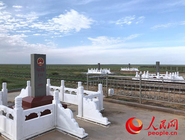 中蒙邊境815、816號界碑。人民網(wǎng)記者 王捷攝